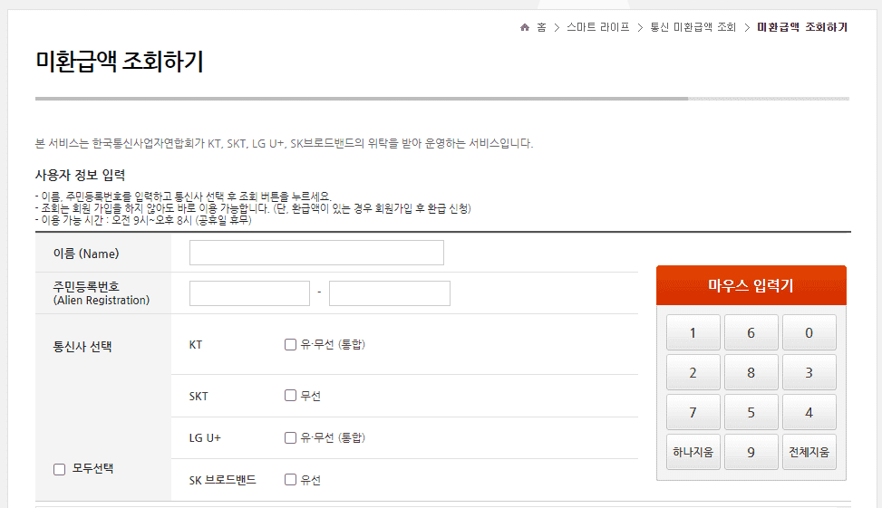 통신비 미환급금 조회하기