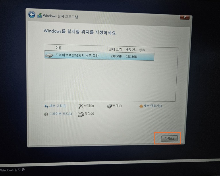 5. 아래와 이 윈도우 설치화면으로 이동됩니다.