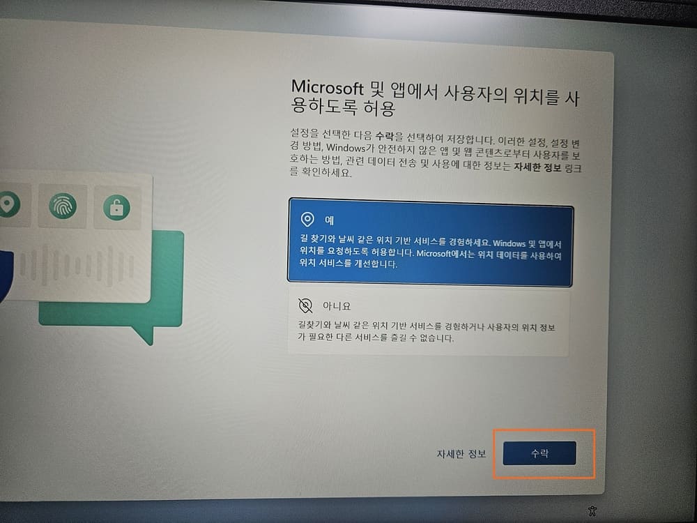 13. 국가 '한국'으로 선택 후 [예] 버튼을 선택해 주세요.