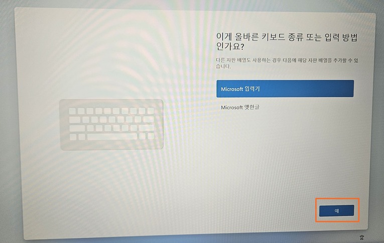 14. 키보드 종류 선택 후 [예] 선택해 주세요.